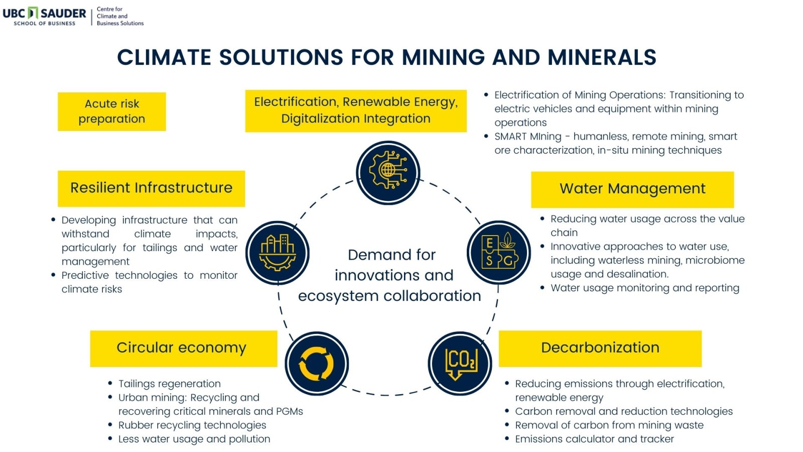 As global demand for sustainable practices grows, minerals powering clean technologies, such as EVs and solar panels, are more crucial than ever. Our new report from the UBC Sauder Centre for Climate and Business Solutions explores the role of the Canadian minerals and mining sector in this transition.