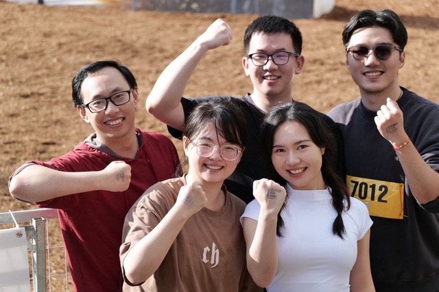 Li (bottom right) with her MBAN classmates at UBC’s Storm the Wall event.