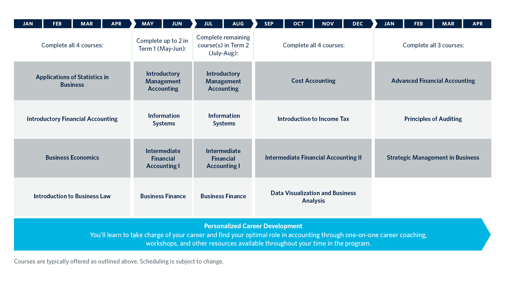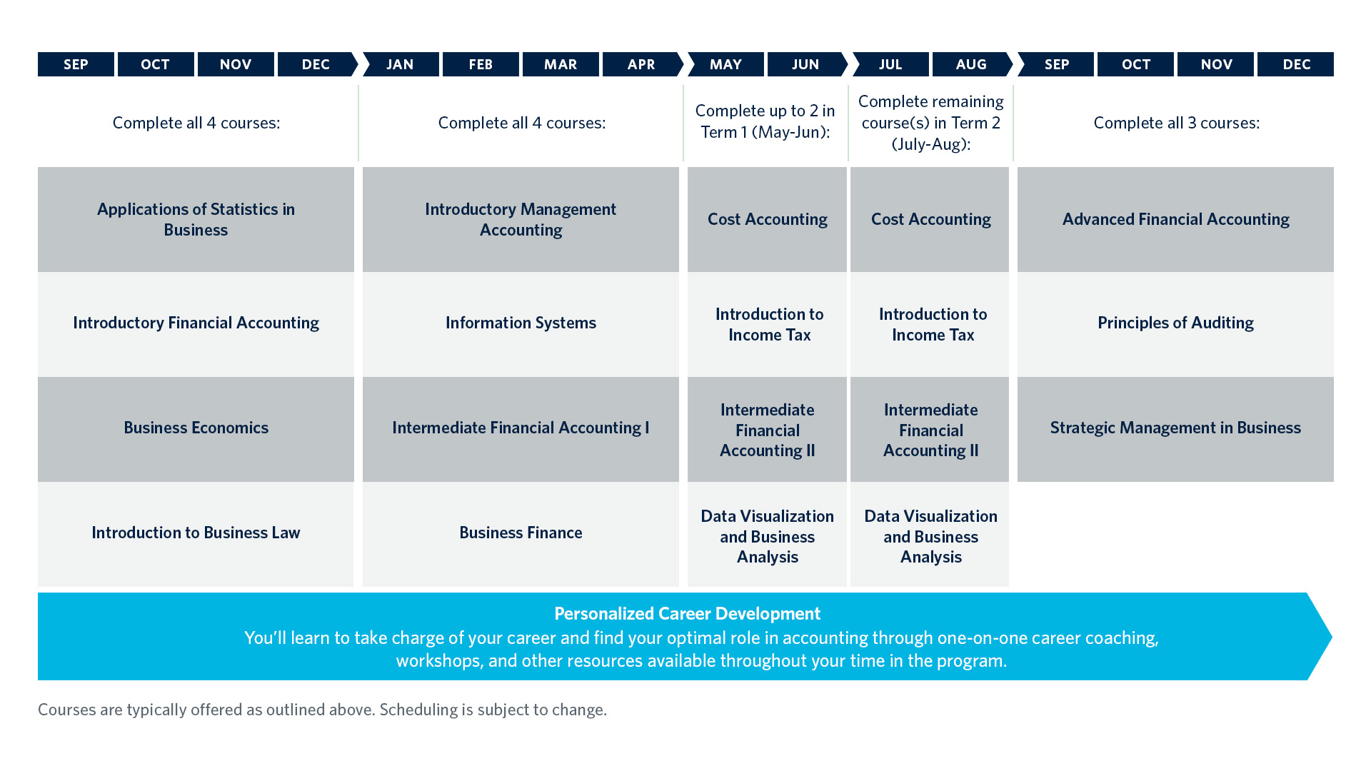 Courses are typically offered as outlined above. Scheduling is subject to change.